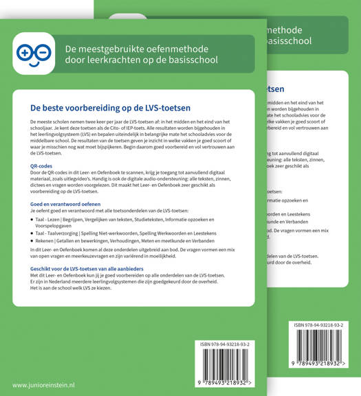 De Leer- en Oefenboeken van Junior Einstein zijn al meer dan tien jaar de bestverkochte van Nederland. Elk boek is zorgvuldig samengesteld door leerkrachten en onderwijsspecialisten, onder leiding van Joan Sanders en Michelle Leuveld, de inhoudelijke drijvende krachten achter de onderwijscontent van Junior Einstein. Dankzij hun jarenlange ervaring sluiten deze boeken uitstekend aan op de LVS-toetsen en de behoeften van basisschoolkinderen. Wekelijks oefenen meer dan 500.000 kinderen met plezier én succes met Junior Einstein.