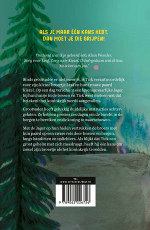 Sinds Grootvader er niet meer is, is Tick verantwoordelijk voor zijn kleine broertje Leaf en hun trouwe paard Kiezel. Op een dag verschijnt een dodelijke Jager bij hun huisje in de bossen en Tick weet meteen wat dat betekent: het koninkrijk wordt aangevallen. Grootvader heeft gelukkig duidelijke instructies achtergelaten. Ze hebben precies zes dagen om de burcht in de bergen te bereiken en de koning te waarschuwen.