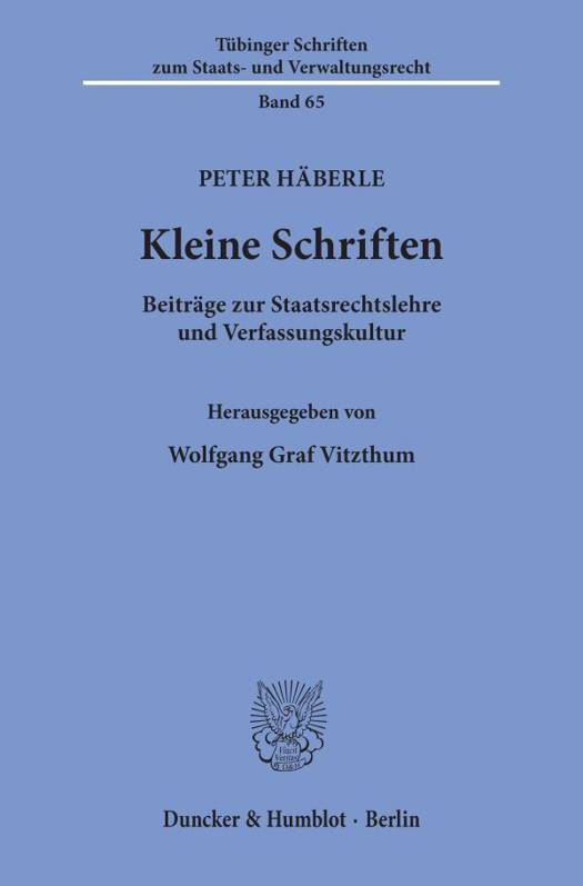 Das Buch erscheint zur Entpflichtung dieses global rezipierten Württembergers in der einschlägigen Tübinger Schriftenreihe. Der Verleger hat ein Geleitwort, der Herausgeber ein Nachwort beigesteuert - auch diese Beiträge charakterisieren Peter Häberle als einen traditionsbewußten Neuerer, dem für eine offensichtlich unversiegbare Kaskade von Ideen, Encouragements und Synthesen zu danken ist.