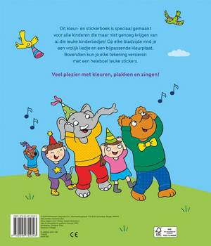 Dit kleur- en stickerboek is speciaal gemaakt voor alle kinderen die maar niet genoeg krijgen van al die leuke kinderliedjes! Op elke bladzijde vind je een vrolijk liedje en een bijpassende kleurplaat. Bovendien kun je elke tekening versieren met een heleboel leuke stickers. Veel plezier met kleuren, plakken en zingen! Voor kinderen van 3 tot 5 jaar. Met herbruikbare stickers.