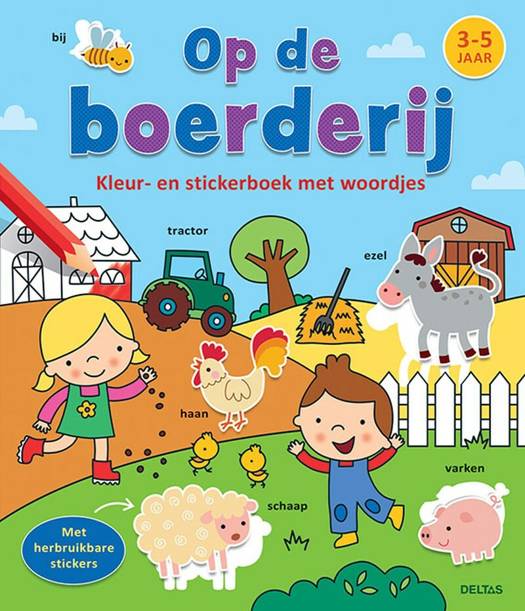 Sla snel dit stickerboek open en ga mee op ontdekkingstocht naar de boerderij. Je loopt over het erf, naar de stal, je gaat naar de wei en komt op nog veel meer leuke plekken! Door het boek heen leer je een heleboel dieren kennen. Maar wat dit boek echt leuk maakt, zijn de stickers die erbij zitten. Plak ze allemaal op de juiste plaats en kleur daarna de kleurplaten mooi in! Urenlang kleur- en plakplezier voor kinderen van 3 tot 5 jaar. Met herbruikbare stickers.