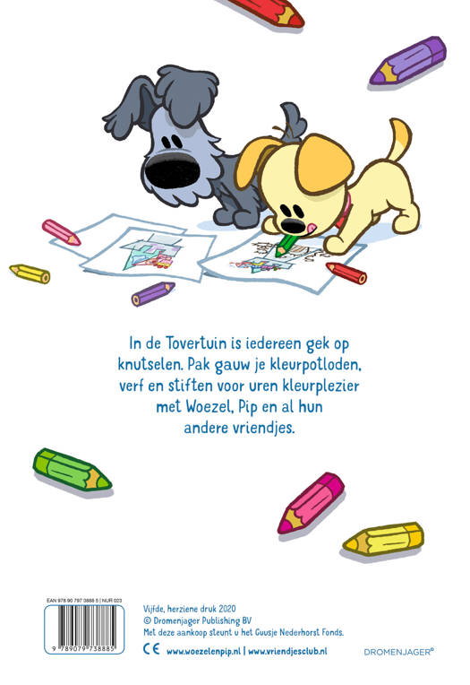 Pak gauw je kleurpotloden, verf of stiften voor eindeloos tekenplezier met Woezel, Pip, Buurpoes, Molletje en alle andere bekende figuurtjes uit de Tovertuin.