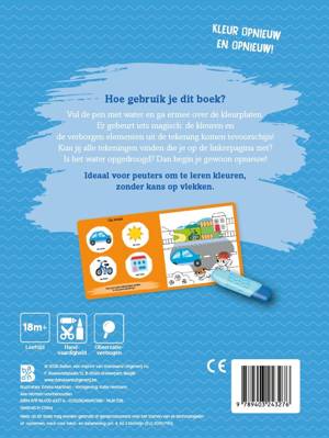 Het populaire concept 'Kleuren met water' bestaat nu ook voor de allerkleinsten rond het thema 'Eerste woordjes', met een aangepaste pen en in kartonboekformaat. Peuters vanaf 18 maanden kunnen zo leren kleuren zonder vlekken te maken. Door de aangepaste zoekopdrachten leren ze bovendien heel wat bij.