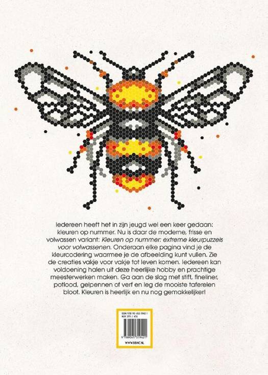 Iedereen heeft het in zijn jeugd wel een keer gedaan: kleuren op nummer. Nu is daar de moderne, frisse en volwassen variant: Kleuren op nummer: extreme kleurpuzzels voorvolwassenen. Onderaan elke pagina vind je de kleurcodering waarmee je de afbeelding kunt vullen. Zie de creaties vakje voor vakje tot leven komen! Iedereen kan voldoening halen uit deze heerlijke hobby en prachtige meesterwerken maken. Ga aan de slag met stift, fineliner, potlood, gelpennen of verf en leg de mooiste taferelen bloot. Kleuren is heerlijk en nu nog gemakkelijker!