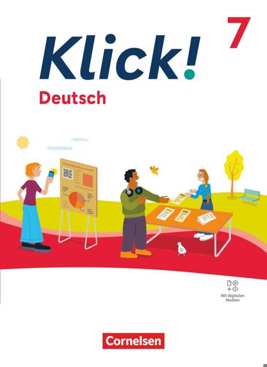 Neu bei Klick! ist der hybride Ansatz. Dabei wird das gedruckte Buch durch optionale digitale Angebote angereichert, auf die die Lernenden ganz einfach über die Cornelsen Lernen App oder das E-Book zugreifen. Damit stehen ihnen zur Verfügung: Audios, Videos, Quizzes (interaktive Übungen), Hilfestellungen zum Lösen von Aufgaben sowie zusätzliche Angebote für leistungsstärkere Lernende.