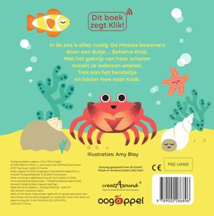 In de zee is alles rustig. De meeste bewoners doen een dutje … Behalve Krab.Met het geknip van haar scharen maakt ze iedereen wakker.Trek aan het hendeltje en luister mee naar Krab.