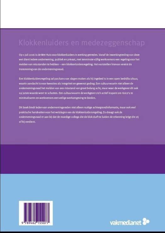 Dit boek biedt leden van ondernemingsraden niet alleen nuttige achtergrondinformatie, maar ook veel praktische handvatten voor het welslagen van de klokkenluidersregeling. Zo draagt ook de ondernemingsraad er aan bij dat de moedige collega die de klok durft te luiden de erkenning krijgt die zij of hij verdient.