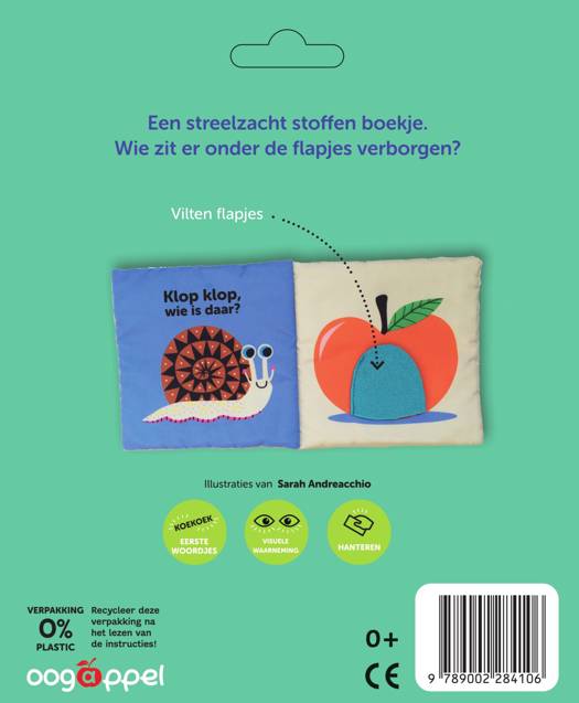 Een stoffen boek met flapjes die je kan optillen om verrassende dieren te ontdekken!