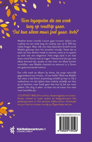 Als Maddies vriendin Lauren haar uitnodigt voor haar bruiloft, staat ze te springen van enthousiasme. Er is alleen één probleem: ze is nét door haar zoveelste vriendje gedumpt en heeft dus geen date om mee te nemen. En dat terwijl deze bruiloft allesbehalve standaard is: het bruidspaar vraagt hun gasten om hun allereerste roadtrip – de reis waarop ze verliefd werden – na te doen. Daarom besluit Maddie Simon mee te vragen. Wat begint als een praktische oplossing, verandert al snel in een rit vol herinneringen, onverwachte gesprekken… en misschien wel meer dan alleen vriendschap.