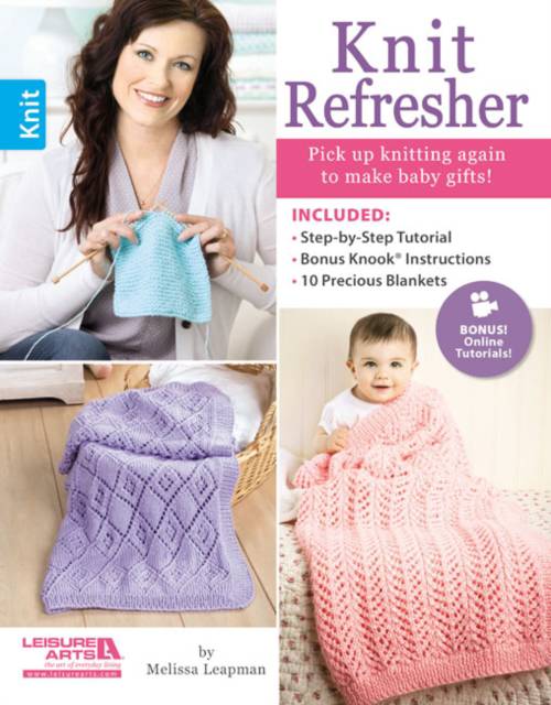 Knit Refresher has everything you need to get reacquainted with long-lost knitting skills or to use the Knook, a specialised crochet hook from Leisure Arts that makes it possible to create true knitted fabric without traditional knitting needles. Clear illustrations and photos are given, plus links to helpful technique videos.