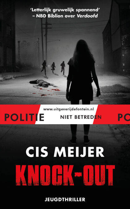 Cis Meijers YA-thriller: 'Knock-out'. Nu met herkenbaar POLITIE NIET BETREDEN-elastiek.
