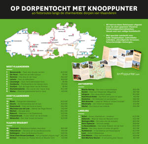 40 unieke knooppuntenfietsroutes langs de mooiste dorpen van Vlaanderen. Op dorpentocht met Knooppunter. Met deze dorpenbox bezoek je de charmantste en fotogeniekste dorpen van Vlaanderen. Plekken waar drukte en lawaai ver weg blijven, plaatsjes waar je de pauze-knop kunt indrukken en - zonder schuldgevoel - mag genieten van de authentieke schoonheid van het dorp, de mooie natuur rondom of eenvoudigweg van een drankje op een zonovergoten terras.