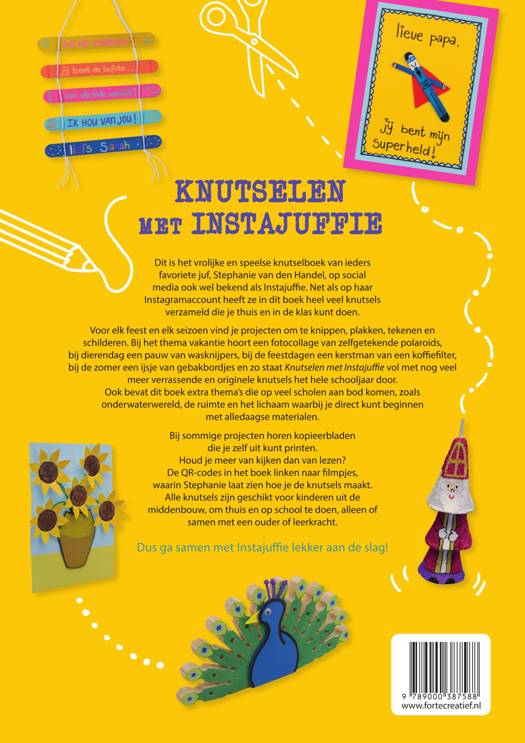 Dit is het vrolijke en speelse knutselboek van ieders favoriete juf, Stephanie van den Handel of Instajuffie. Net als op haar Insta-account heeft ze in dit boek knutsels verzameld die je thuis en in de klas kunt doen.
