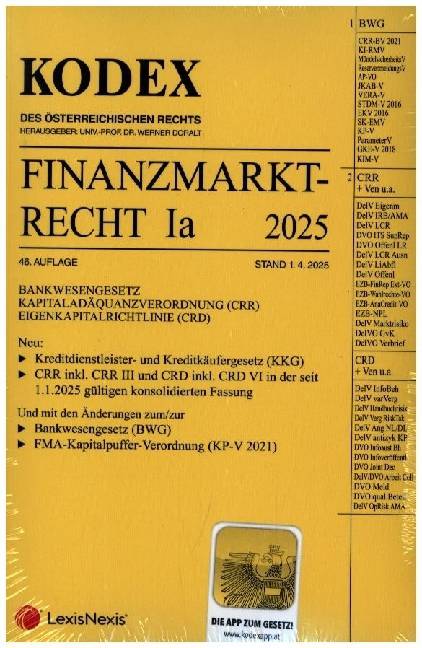 Der Kodex Finanzmarktrecht I in den Bänden Ia und Ib 2025, 46. Auflage, Stand 1. 4. 2025, enthält: