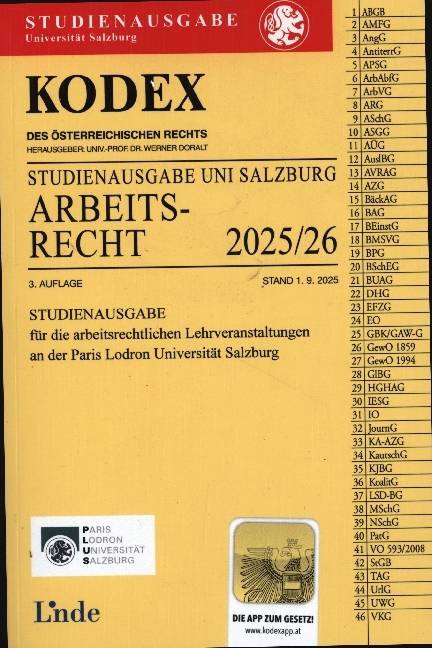 KODEX Studienausgabe Arbeitsrecht 2025/26 STUDIENAUSGABE für die Universität Salzburg 3. Auflage, Stand 1.9.2025 Mit der App zum Gesetz