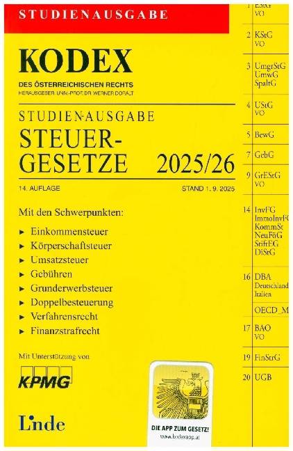 KODEX Studienausgabe Steuergesetze 2025/26 14. Auflage, Stand 1.9.2025 Mit der App zum Gesetz