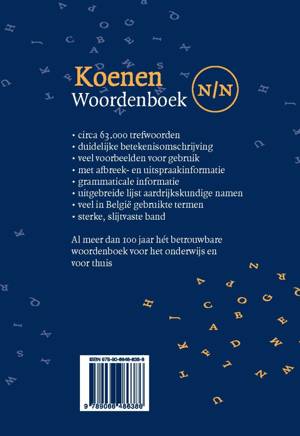 De eerste druk van het Koenen Woordenboek Nederlands is al meer dan honderd jaar oud! In de loop van die eeuw is het woordenboek uitgegroeid tot een betrouwbaar en toegankelijk woordenboek voor een breed publiek. De dertigste druk van het Koenen Woordenboek Nederlands, in de officiële spelling 2005, is dan ook een uitstekend, actueel en betaalbaar hulpmiddel bij het dagelijks taalgebruik.