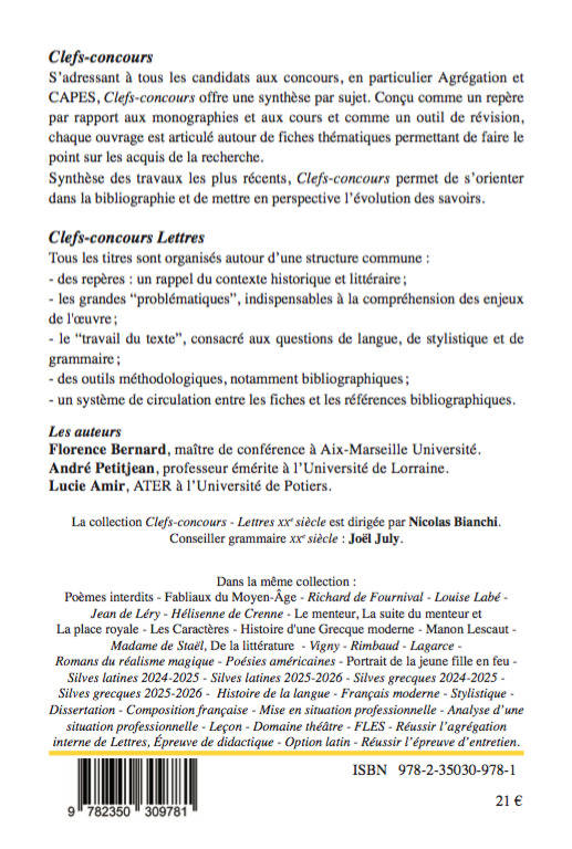 Comme tous les Clefs-concours de Lettres modernes, l’ouvrage est structuré en quatre parties :
