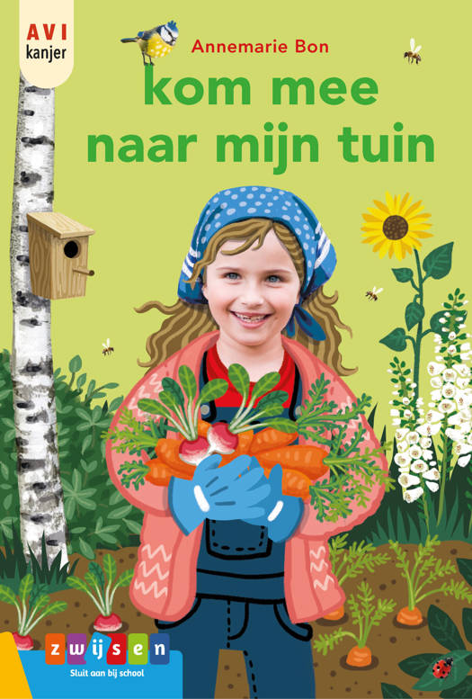 kom mee naar mijn tuin. In deze verhalenbundel vol korte verhalen lezen beginnende lezers tekstjes over de tuin van Kim (AVI start). kim heeft een tuin. er is kool en peen. en een hut en een wip. in de boom zit mees. lees het maar in dit boek. dit is het boek van kim.