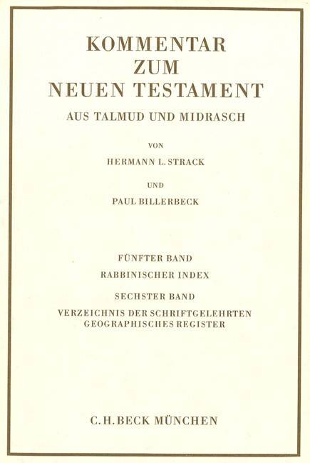 Dieses Pionierwerk der Bibelwissenschaft erhellt den jüdischen Hintergrund der neutestamentlichen Schriften und hat damit zwischen den Weltkriegen eine neue Basis für das Verständnis des Neuen Testaments geschaffen. Ziel ist es, „den gesamten der Erläuterung des Neuen Testaments dienlichen Stoff aus der altjüdischen Literatur zu sammeln, zu sichten und in zuverlässiger Übersetzung bequem zugänglich zu machen“ (Einleitung). Das Material wird in der Reihenfolge des Neuen Testaments präsentiert; synoptische Parallelen werden bei ihrem ersten Vorkommen im Matthäusevangelium kommentiert, dem dadurch der bei Weitem größte Umfang gewidmet ist. Das mehrbändige Werk entstand in den 1920er-Jahren und konzentriert sich auf Vergleichsstellen aus Talmud und Midrasch. Trotz dieser Einschränkung gilt die Quellensammlung bis heute international als eine einzigartige Fundgrube, die wohl auch in den nächsten Jahrzehnten durch kein vergleichbares Nachschlagewerk ersetzt werden wird.