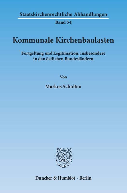 Kommunale Kirchenbaulasten sind ein besonderer, nur historisch zu begründender und rechtlich komplexer, Bestandteil öffentlicher Religionsförderung. Konfessionelle Verschiebungen in der Gesellschaft, finanzschwache Kommunen und nicht zuletzt ein verstärkt ins Kreuzfeuer der Kritik geratener institutioneller religionsverfassungsrechtlicher Rahmen sind nur einige der Faktoren, aufgrund derer nicht unbeachtliche Anfragen an den Fortbestand dieser alten Rechts- und Leistungsbeziehungen gestellt werden. Bisher ungeklärt war das rechtliche Schicksal kommunaler Kirchenbaulasten ostdeutscher Gemeinden und die Frage, ob und inwieweit der Einigungsvertrag diese alten kirchlichen Vermögensrechte auf einen Rechtsnachfolger übertragen haben könnte. Die Publikation würdigt diese und weitere Rechtsfragen und setzt sich kritisch mit der Rechtsansicht des BVerwG auseinander, wonach kommunale Kirchenbaulasten durch die Wiedervereinigung ersatzlos erloschen sein sollen. Ein alternativer Lösungsweg wird erarbeitet, der nicht nur der verfassungsrechtlich verbürgten Kirchengutsgarantie, sondern auch und insbesondere der Geschichte des Verhältnisses von Staat und Kirche in der DDR Rechnung trägt.