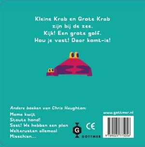Deze uitgave van 'Komt goed, Kleine Krab' is gemaakt van extra stevig karton en heeft een mooi, handzaam formaat. Een perfect boek voor peuters dus, met hun grijpgrage handjes. 'Komt goed, Kleine Krab' is een van de kleurrijke en eigenwijze prentenboeken van Chris Haughton (de maker van het succesvolle 'Mama kwijt' (Prentenboek van het Jaar 2012). Deze editie is een extra dik en superstevig kartonboek over Kleine Krab die samen met Grote Krab nieuwe dingen gaat proberen. Grote Krab en Kleine Krab wonen samen in een gezellig poeltje tussen de rotsen. Op een dag willen ze graag even met hun pootjes de grote zee in. Kleine Krab kan niet wachten! Maar de zee, die is toch best groot en woest... Zou Kleine Krab het wel durven? En wat zullen ze aantreffen onder de golven? Qua thema - lekker de grote zee in - en formaat ideaal voor op vakantie!De eigenwijze stijl en droge humor van prentenboekenmaker Chris Haughton spatten weer van de pagina's. Zijn prentenboek 'Mama kwijt' werd Prentenboek van het Jaar 2012 en ook 'Komt goed, Kleine Krab' is inmiddels een echte klassieker. Wist je dat er van 'Mama kwijt', 'Misschien...', 'Welterusten allemaal' en 'Sst! We hebben een plan' ook kartonedities verkrijgbaar zijn?