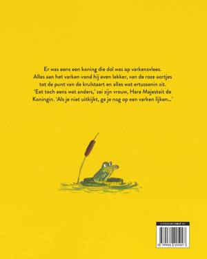 Er was eens een koning die dol was op varkensvlees. Alles aan het varken vond hij even lekker, van de roze oortjes tot de punt van de krulstaart en alles wat ertussenin zit. ‘Eet toch eens wat anders,’ zei zijn vrouw, Hare Majesteit de Koningin. ‘Als je niet uitkijkt, ga je nog op een varken lijken.’ Maar de koning peinsde er niet over om iets anders dan varken te eten, en dat heeft hij geweten…