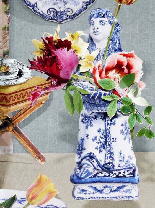 Delfts aardewerk kent ook eigentijdse koninklijke uitingen, zoals het nieuwe staatsbanketservies ‘Blossom Panache’ uit 2017, waarvan enkele stukken in het boek worden getoond. Of bijvoorbeeld in een installatie geïnspireerd op wandbespanningen voor de Blauwe Salon van Paleis Huis ten Bosch in 2019.