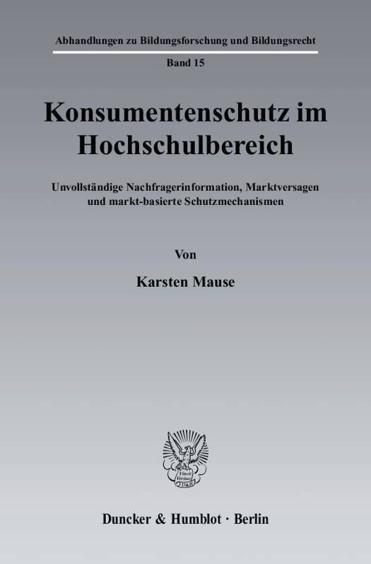 Vor diesem Hintergrund untersucht Karsten Mause, welche Mittel aus ökonomischer Sicht geeignet erscheinen, die zwischen den Anbietern und Nachfragern von Studienplätzen bestehende Informationsasymmetrie abzubauen, und das drohende Marktversagen infolge von Informationsmängeln abzuwenden. Der Autor widmet sich, anders gewendet, dem in der bildungsökonomischen Literatur bislang lediglich ansatzweise behandelten Thema des "Konsumentenschutzes" im Hochschulsektor: Wie können sich (potentielle) Studenten vor schlechter Angebotsqualität schützen? Mit Hilfe von Theoriebausteinen aus der Informationsökonomik, der Law & Economics sowie der Neuen Institutionenökonomik wird gezeigt, daß sich auf Lehrdienstleistungsmärkten unter bestimmten Bedingungen Mechanismen des "Marktschutzes" (Anbieterreputation, Anbieterwerbung, Einschaltung von Zertifizierern und Informationsintermediären) und des "Selbstschutzes" (studentische Nachfrage nach Qualitätsinformationen) herausbilden. Funktionieren diese markt-basierten Mechanismen, dann können die Marktteilnehmer das vorliegende Informationsproblem selbst lösen. Empirische Befunde aus dem größtenteils wettbewerblich organisierten Hochschulsystem der USA stützen die Argumentation. Studentenschutz im Hochschulsektor ist demnach nicht per se eine Staatsaufgabe.