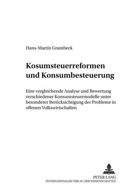 Die Arbeit untersucht die Auswirkungen einer Einführung und Anwendung von Konsumsteuern in offenen Volkswirtschaften. Berücksichtigt werden neben der indirekten Umsatzsteuer verschiedene direkte Konsumsteuern. Anhand eines Zwei-Länder-Falles wird analysiert, welche einzelwirtschaftlichen Reaktionen die unilaterale bzw. bilaterale Substitution der Einkommensteuer durch eine Konsumsteuer auslöst. Ferner werden die Konsumsteuern im Vergleich zur Einkommensteuer unter allokativen, distributiven und administrativen Gesichtspunkten bewertet. Es stellt sich heraus, dass der Konsum unter Berücksichtigung der in einer offenen Volkswirtschaft auftretenden Komplikationen keine bessere Steuerbemessungsgrundlage als das Einkommen ist.