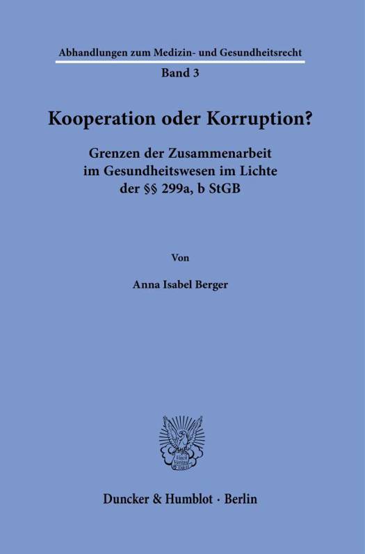 English summary: Cooperation or Corruption? - Limits of Cooperation in the Health Care Sector in the Light of 299a, b of the German Criminal Code The criminal offenses 299a, b StGB have made bribery and corruption in the health care system a punishable offense since it came into force in 2016. Since then, it has been unclear whether numerous forms of cooperation constitute criminal corruption or whether they are still permissible. In this respect, the thesis offers a handout to deal with the difficult questions of demarcation and to bring light into the darkness of the gray areas relevant to criminal law. German description: Die Straftatbestande 299a, b StGB stellen die Bestechung und die Bestechlichkeit im Gesundheitswesen seit ihrem Inkrafttreten im Jahr 2016 unter Strafe. Bei zahlreichen Zusammenarbeitsformen in der Praxis ist seitdem unklar, ob diese sich nach den Vorschriften bereits als strafbare Korruption oder noch als zulassige Kooperation darstellen. Die Arbeit untersucht neben den bestehenden dogmatischen Unsicherheiten der Tatbestande die strafrechtlichen Risiken der Zusammenarbeit im Gesundheitswesen anhand zahlreicher Einzelfallkonstellationen. Sie kommt zu dem Ergebnis, dass erheblicher Beratungsbedarf bei der Ausgestaltung und Verwirklichung diverser Kooperationsformen besteht. Um dieser Verunsicherung entgegenzuwirken, konkretisiert die Autorin diverse zulassige Zusammenarbeitsformen und grenzt diese von strafrechtlich relevanten Verhaltensweisen ab. Die Arbeit bietet insoweit eine Handreichung fur die schwierigen Abgrenzungsfragen zwischen zulassiger Kooperation und strafbarer Korruption. Die Arbeit wurde mit dem Forderpreis des Zentrums fur Gesundheitsrecht der Rechtswissenschaftlichen Fakultat der Christian-Albrechts-Universitat zu Kiel fur das Jahr 2022 ausgezeichnet.