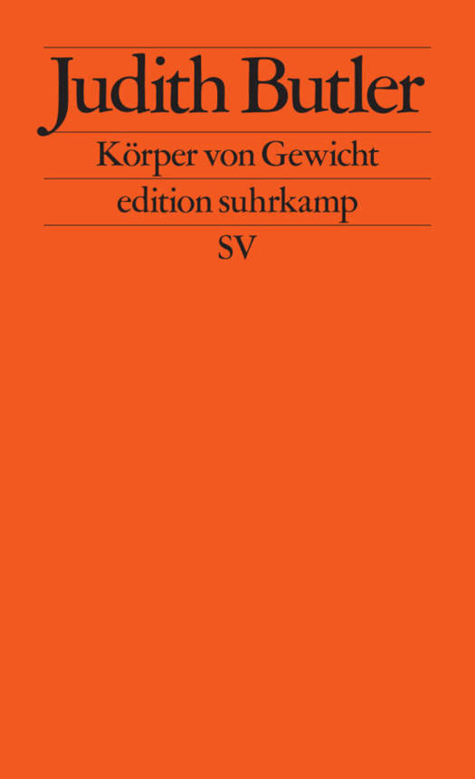 In ihrem ersten, vieldiskutierten Buch Das Unbehagen der Geschlechter (es 1722), mit dem sie zum Star der feministischen Debatten anvancierte, hatte Judith Butler die These aufgestellt, daß die Geschlechtsidentität nichts natürlich Gegebenes sei, sondern sozial, kulturell und sprachlich unablässig konstituiert werde.In Körper von Gewicht geht sie noch einen Schritt weiter: Sie entlarvt die liebgewordene Unterscheidung zwischen biologischem und sozialem Geschlecht ihrerseits als kulturell konstruierte Ideologie. Damit geraten scheinbar feststehende Kategorien wie Natur, Kultur und Körper ebenso ins Wanken wie zuvor schon die klaren Zuordnungen von Männlichkeit und Weiblichkeit. Butler fragt in ihrem »spannenden kämpferischen Werk« (Tages-Anzeiger) nach den subtilen Machtmechanismen, die hinter solchen Kategorien stehen.