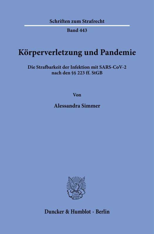 English summary: Bodily Harm in Light of the COVID-19 Pandemic. The Criminal Liability Due to the Infection with SARS-CoV-2 of another Person According to the 223 ff. of the German Criminal Code The thesis examines the criminal liability for the infection with SARS-CoV-2 of another person according to the 223 ff. of the German Criminal Code. Especially the possibility of an asymptomatic course and the burden of proving causality, only make attempted simple bodily harm a conceivable scenario. This gap in German criminal law can nevertheless not be filled by creating a new abstract endangerment offense due to the principle of last resort. German description: Die Untersuchung behandelt die strafrechtliche Verantwortlichkeit bei einer vorsatzlichen oder fahrlassigen Infektion mit SARS-CoV-2 nach den 223 ff. StGB. Der haufig milde oder symptomlose Verlauf der Infektion macht eine solche Strafbarkeit - anders als bei HIV - kompliziert. Bei fahrlassigen Delikten konnte zwar eine Verletzung von Sorgfaltspflichten - wie das Nichterkennen der Infektion - eine Strafbarkeit begrunden. Das ubergeordnete Kausalitatsproblem der naturwissenschaftlich kaum nachweisbaren Infektion bleibt aber bestehen. Eine Strafbarkeit ist deshalb nur im Ausnahmefall denkbar. Im Fokus steht auch die sog. Querdenker-Bewegung. Rechtfertigungsgrunde kommen ihr nicht zugute. Im Einzelfall ist aber ein Verbotsirrtum moglich. Diese scheinbare Lucke im deutschen Strafrecht konnte durch die Schaffung eines abstrakten Gefahrdungsdelikts geschlossen werden. Dem steht allerdings das Ultima-Ratio-Prinzip entgegen.