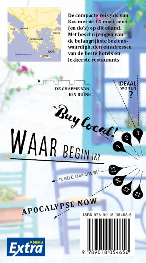 Beleef Kos met de compleet vernieuwde reisgids ANWB Extra Kos! Op het eiland Kos komen heel verschillende culturen samen. Minaretten en kerktorens, maar ook ruïnes uit de oudheid zijn nog steeds terug te zien. Palmbomen en kale rotsen staan voor de veelzijdigheid van de natuur. Met zijn 112 kilometer lange kust is Kos het perfecte eiland voor een strandvakantie.