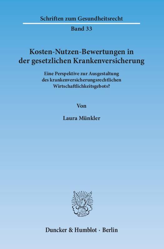 Kosten-Nutzen-Bewertungen stellen vor dem Hintergrund der Finanzierbarkeit der gesetzlichen Krankenversicherung ein vielfach diskutiertes Mittel zur Bewältigung von Verteilungsproblemen dar. Ethische, ökonomische und rechtliche Aspekte prallen in ihnen aufeinander, denn Kosten-Nutzen-Bewertungen werfen die Frage nach der Bewertbarkeit von Leben und Gesundheit auf und adressieren das Dilemma zwischen unbegrenzten Bedürfnissen und begrenzten Mitteln. Vor diesem Hintergrund untersucht Laura Münkler den bestehenden wie auch den verfassungsrechtlich möglichen Anwendungsbereich von Kosten-Nutzen-Bewertungen. Insbesondere analysiert sie das Zusammenspiel zwischen IQWiG und GBA, die verwendete ökonomische Methodik wie auch die rechtliche Umsetzbarkeit von Kosten-Nutzen-Bewertungen und erörtert, inwieweit das Wirtschaftlichkeitskriterium ein Einfallstor für derartige Bewertungen bildet.