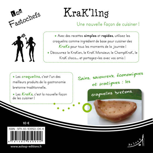 « Une nouvelle façon de cuisiner ! »<br /><br /> ⢠Avec des recettes simples et rapides, utilisez les craquelins comme ingrédient de base pour cuisiner des KraKs pour tous les moments de la journée !<br /><br /> ⢠Découvrez le KraKen, le KraK Monsieur, le ChampiKraK, le KraK choco... et partagez-les avec vos amis !<br /><br /> ⢠Les craquelins, c’est l’un des meilleurs produits de la gastronomie bretonne traditionnelle.<br /><br /> ⢠Les KraKs, c’est la nouvelle façon de les cuisiner ! Sains, savoureux, économiques et pratiques : les craquelins bretons.<br /><br /> ⢠25 recettes d’entrées, de plats principaux et de desserts, toutes accompagnées d’une variante.