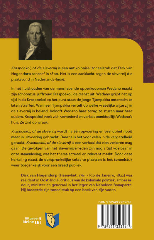Kraspoekol, of de slavernij wordt na één opvoering en veel ophef nooit meer in uitvoering gebracht. Daarna is het voor velen in de vergetelheid geraakt. Kraspoekol, of de slavernij is een verhaal dat niet verloren mag gaan. De gevolgen van het slavernijverleden zijn nog altijd voelbaar in onze samenleving, wat het thema actueel en relevant maakt. Door deze hertaling naast de oorspronkelijke tekst te plaatsen is het toneelstuk weer toegankelijk voor een breed publiek.
