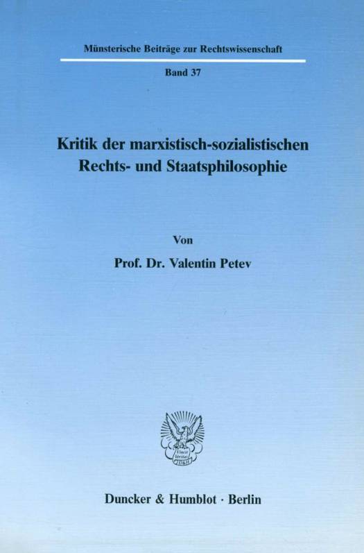 Im Frühjahr 1989, am Vorabend des Zusammenbruchs des sozialistischen politischen Systems, legt der Rechtsphilosoph Valentin Petev eine umfassende Kritik der Rechtsdoktrin und der gesellschaftlich-politischen Praxis des realen Sozialismus vor. Er stellt fest, daß das große humanistische Versprechen des Marxismus nicht einlösbar und das politische System des Sozialismus nicht reformierbar ist. Dies führt zu weiteren interessanten rechtsphilosophischen Folgerungen.