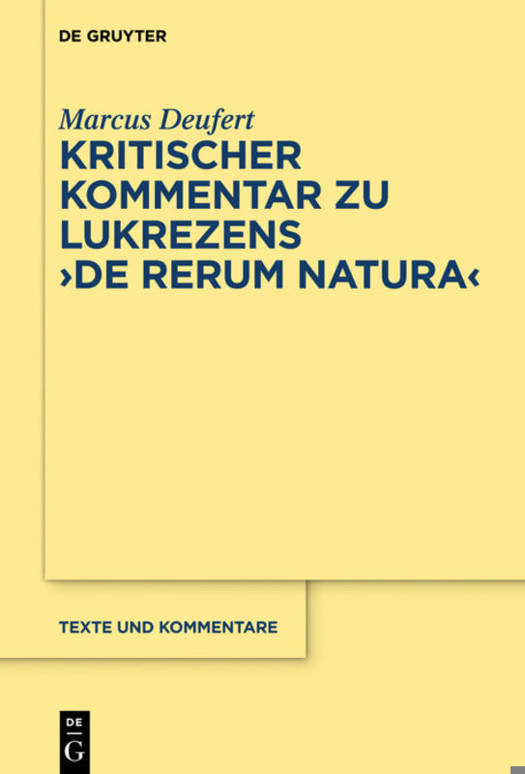 Der kritische Kommentar rechtfertigt den Text der Neuausgabe des Lukrez in der Bibliotheca Teubneriana. Die vielen textkritisch umstrittenen Stellen des Gedichts werden eingehend geprüft; konkurrierende Deutungen und Konjekturen kritisch bewertet; neue Lösungen für die Textgestaltung begründet. Dabei erhellt der Kommentar fortwährend auch inhaltlich-philosophische und literarisch-stilistische Aspekte des Gedichts.