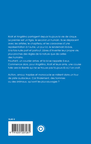 KroK et Angélino partagent depuis toujours la vie de cirque. Le premier est un tigre, le second un humain. Ils se déplacent avec les artistes, le chapiteau et les caravanes d'une représentation à l'autre, un jour ici, le lendemain là-bas, à la fois nulle part et partout. Libres d'inventer leur propre vie, plus proches des règles de la nature que de celles des humains. Pourtant, un courrier arrive, et la loi se rappelle à eux. Commence alors, pour Angélino, KroK et leurs amis, une course folle vers la liberté qui ne se trouve pas toujours là où l'on croit.