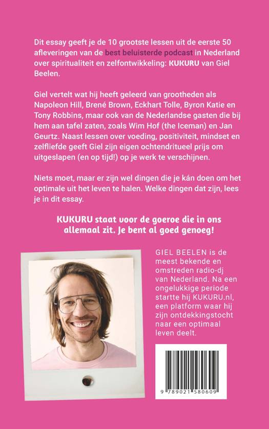 In een periode waarin het niet zo lekker ging, ontdekte Giel Beelen dat je niet alleen je lichaam maar ook je geest kunt trainen. Hij begon zelfhulpboeken te lezen en startte Kukuru, een platform met podcasts waarin hij zijn zoektocht deelt. Wekelijks gaat Giel in gesprek met inspirerende sprekers over zelfontwikkeling en spiritualiteit, waaronder Jelle Hermus, Wim Hof, Tabe Ydo en Merel Teunis. De 10 grootste lessen die hij heeft geleerd, beschrijft hij in dit essay. Niet om te vertellen wat je moet maar kán doen om het optimale uit het leven te halen.