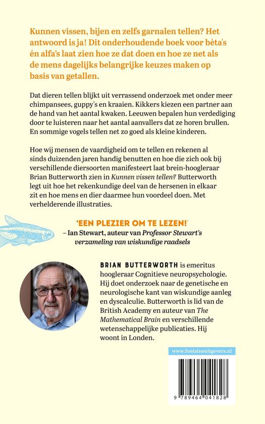 Kunnen vissen, bijen en zelfs garnalen tellen? Het antwoord is ja! Dit onderhoudende boek voor bèta'sén alfa's laat zien hoe ze dat doen en hoe ze net als de mens dagelijks belangrijke keuzes maken opbasis van getallen. Dat dieren tellen blijkt uit verrassend onderzoek met onder meer chimpansees, guppy's en kraaien. Kikkers kiezen een partner aan de hand van het aantal kwaken. Leeuwen bepalen hun verdediging door te luisteren naar het aantal aanvallers dat ze horen brullen. En sommige vogels tellen net zo goed als kleine kinderen.Hoe wij mensen de vaardigheid om te tellen en rekenen al sinds duizenden jaren handig benutten en hoe die zich ook bij verschillende diersoorten manifesteert laat brein-hoogleraar Brian Butterworth zien in Kunnen vissen tellen? Butterworth legt uit hoe het rekenkundige deel van de hersenen in elkaarzit en hoe mens en dier daarmee hun voordeel doen. Met verhelderende illustraties.'Een plezier om te lezen!'- Ian Stewart, auteur van Professor Stewart's verzameling van wiskundige raadsels