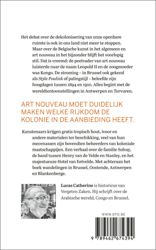 Het debat over de dekolonisering van onze openbare ruimte is ook in ons land niet meer te stoppen. Maar over de Belgische kunst in het algemeen en art nouveau in het bijzonder blijft het voorlopig stil. Dat is vreemd: de peetvader van art nouveau luisterde naar de naam Leopold II en de zoogmoeder was Kongo. De stroming – in Brussel ook gekend als Style Poulink of palingstijl – beleefde zijn hoogdagen tussen 1894 en 1910. Alles begint met de Wereldtentoonstellingen in Antwerpen en Tervuren. Art nouveau moet duidelijk maken welke rijkdom de kolonie in de aanbieding heeft. Kunstenaars krijgen gratis tropisch hout, ivoor en andere materialen ter beschikking, veel van hun mecenassen zijn bovendien beheerders van koloniale maatschappijen. Een verhaal over de familie Solvay, de band tussen Henry Van de Velde en Stanley, en het majestueuze Hôtel Van Eetvelde. Met achteraan het boek wandelingen in Brussel, Oostende, Antwerpen en Blankenberge.