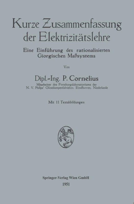 der Elektrizitätslehre Eine Einführung des rationalisierten Giorgischen Maßsystems Von Dip1. Ing. P. Cornetius Mitarbeiter des Forsmungslaboratoriums der N. V. Philips' Gloeilampenfabrieken, Eindhoven, Niederlande Mit 11 Textabbildungen Springer-Verlag Wien GmbH 1951 ISBN 978-3-662-23410-5 ISBN 978-3-662-25462-2 (eBook) DOI 10.1007/978-3-662-25462-2 Alle Rechte, insbesondere das der Übersetzung in fremde Sprachen, vorbehalten Geleitwort. Die Frage, in welcher Einheit eine physikalische Größe ausgedrückt wird, erscheint theoretisch betrachtet ziemlich unwichtig. In der Praxis ist das jedoch keineswegs so, besonders wenn sich zwei oder mehr Maß- systeme eingebürgert haben. Man denke an das metrische und das englische Maßsystem in der Maschinentechnik und an das Nebeneinandergebrauchen des Massenkilogramms durch den Physiker und des Kraftkilogramms durch den Ingenieur. Aus der Wurzel des CGS-Systems der Mechanik sind historisch zwei elektrische Maßsysteme erwachsen, nämlich das elektrostatische und das elektromagnetische CGS-System. Einige theoretische Physiker wenden konsequent eines dieser Systeme an. Daneben benutzt man jedoch meistens das gemischte System von Gauß, das elektrische Größen in ESE, magneti- sche Größen dagegen in EME ausdrückt. In den Formeln treten dadurch Faktoren c (Lichtgeschwindigkeit in cm/sec) auf.