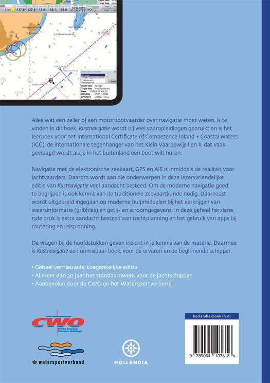 'Kustnavigatie' van Toni Rietveld en Adelbert van Groeningen is hét standaardwerk voor iedere watersporter die het water opgaat. Deze 13de druk is herzien en sluit naadloos aan op de laatste ontwikkelingen in navigatie met elektronische kaarten en tochtvoorbereiding. Álles wat je als watersporter nodig hebt komt aan bod: kaartplotter, AIS, online bronnen en uiteraard ook de klassieke basisnavigatie. Iedere schipper die is voorzien van een exemplaar van 'Kustnavigatie' is binnen een mum van tijd een meester in navigatie. Met dit boek leer je alle skills die je nodig hebt om je positie te bepalen en je schip veilig te navigeren. Dit boek wordt bovendien aanbevolen door de CWO en wordt gebruikt bij veel nautische cursussen en opleidingen. 'Kustnavigatie' is daarom een waardevolle toevoeging aan elke boordbibliotheek.
