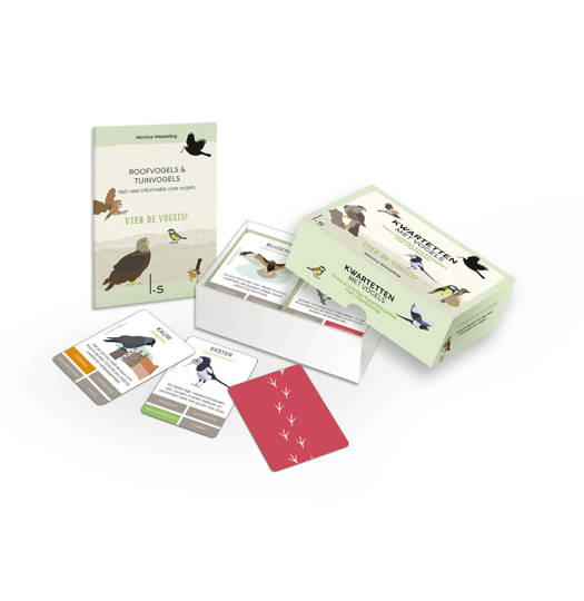 Vier de vogels! – 2 leuke en leerzame kwartetspellen over tuin- en roofvogels voor jong en oud van Monica Wesseling. Met informatieboekje met interessante vogelfeitjes.
