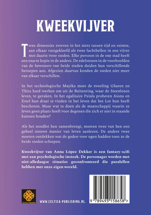 Kweekvijver van Anna López Dekker is een fantasy-scifi met een psychologische insteek. De personages worden met niet-alledaagse situaties geconfronteerd die paralellen hebben met onze eigen wereld.