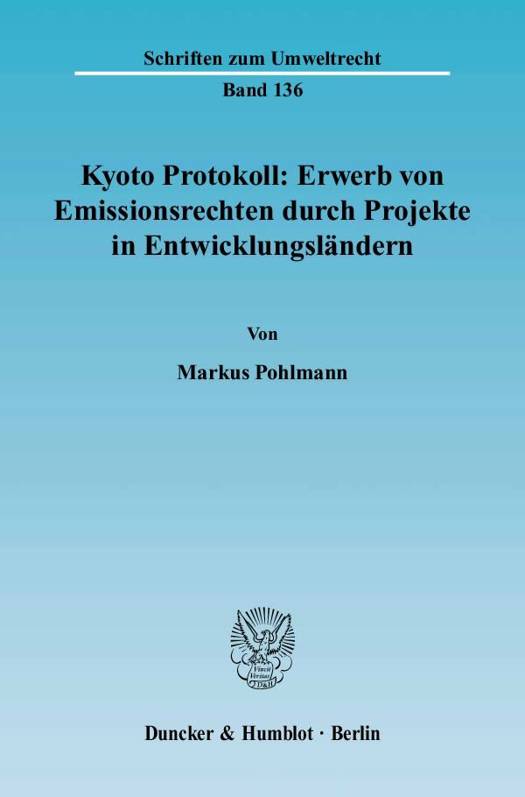 Im Rahmen des Emissionshandelssystems des Kyoto Protokolls können die Vertragsstaaten mit Hilfe ihrer Privatwirtschaft in klimafreundliche Projekte in Entwicklungsländern investieren und sich die hierdurch generierten Emissionsrechte gegenüber ihren völkerrechtlichen Reduktionsverpflichtungen gutschreiben lassen (sog. "Clean Development Mechanismus" (CDM)). Markus Pohlmann setzt sich praxisnah mit einer Vielzahl an rechtlichen Problemen bei der privatwirtschaftlichen Umsetzung völkerrechtlicher Emissionsreduktionsziele auseinander. Hierzu zählen insbesondere die rechtliche Verzahnung des CDM mit bestehenden und künftigen nationalen Bewirtschaftungssystemen, die klimavölkerrechtliche Stellung privater Rechtsträger, die völkerrechtliche Struktur des CDM einschließlich seiner materiell- und verfahrensrechtlichen Voraussetzungen und die Rechtsnatur der durch den CDM zu erwerbenden Emissionsrechte. Auf Grundlage der gewonnenen Erkenntnisse und der bisherigen Erfahrungen des "Prototype Carbon Fund" der Weltbank weist der Autor Lösungen auf zur Gestaltung entsprechender Kaufverträge und zum effektiven Management projektspezifischer Risiken.