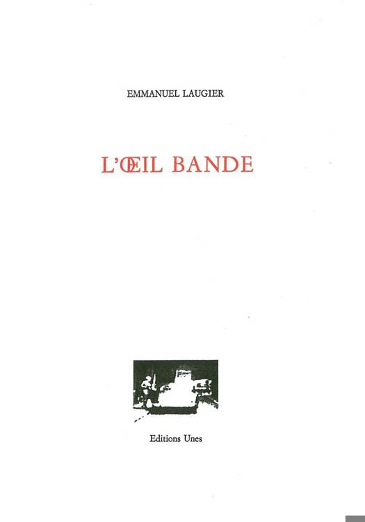 L’Œil bande ouvre grand l’espace de la ville mêlé à l’espace intime, dans une fragmentation des perceptions reflétées sur la rétine. Promenade sensorielle, qui attrape au passage le détail des vitrines, le flash des ampoules, le noir des rues, dans une restitution du regard et de ses clignements, dans la mobilité permanente de l’œil qui embrasse dédales de rues, d’immeubles, façades de pierres. Emmanuel Laugier use de cette disparité de perceptions et d’informations pour nous rendre le monde dans un enregistrement en direct. Cette sensation – debout, chaotique – d’être au fil du texte, sur la bande passante d’un œil qui déroule ses barres de rues, ses misères d’hommes perdus, ses anonymats. Humanité animale, étalée, prise dans les phares crus d’une réalité syncopée. A travers la fente, quelque part à travers la vitesse affolée du nerf optique, dans un saisissement des choses aperçues, toucher le corps, atteindre l’autre, se retrouver, quelque part au milieu de cette humanité qui se déplace. Nos vies battent dans les rues, nos vies hantent les rues, agitations sous le ciel. Sous la neige qui recouvre le jour, multiplie les réflexions, l’œil neige vers la lenteur, vers le plan fixe. L’œil fixe.