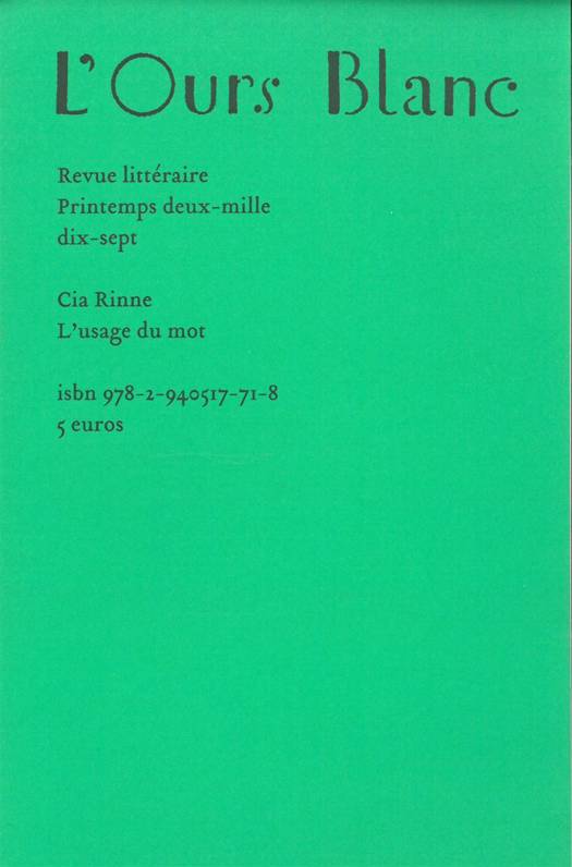 L'Usage du motde Cia Rinne est le seizième numéro de L’Ours blanc